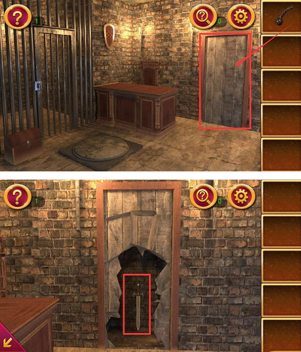 3、用铁球敲开右边的木门,获得宝剑;