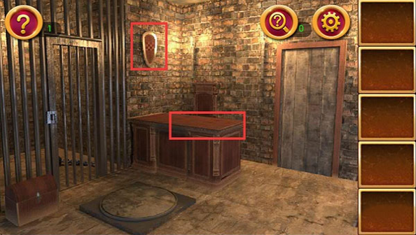 1、点击墙上的盾牌,根据盾牌上的信息,破解桌上的16宫格,获得钥匙;