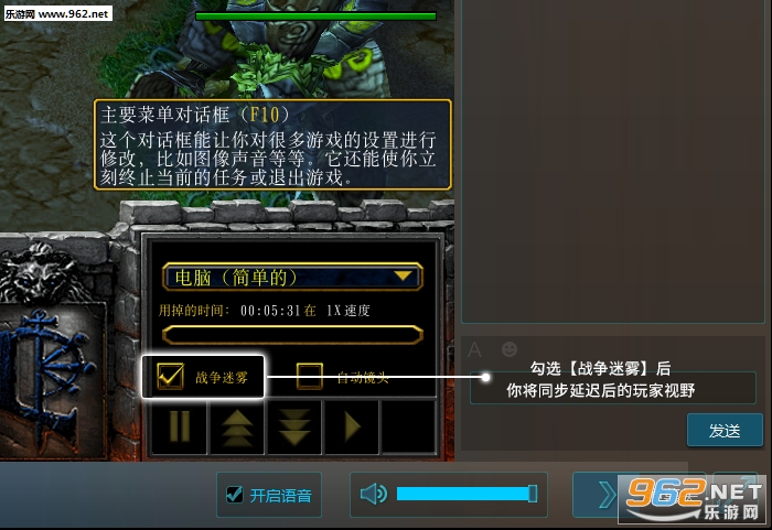 勾选【战争迷雾】后将获得用户的战争迷雾与视野。(无法与自动镜头同时选择)