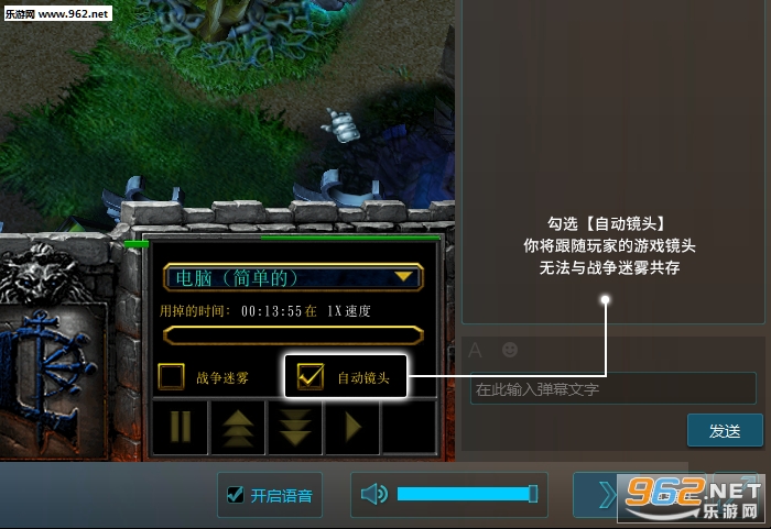 勾选【自动镜头】后将跟随用户的游戏镜头。(无法与战争迷雾同时选择)