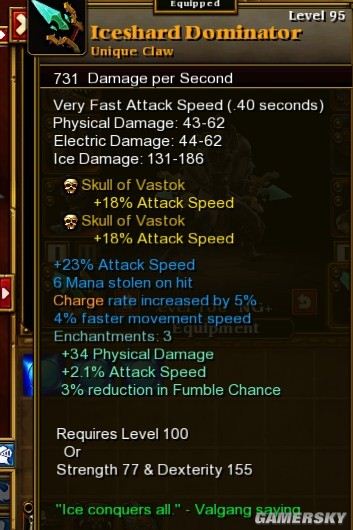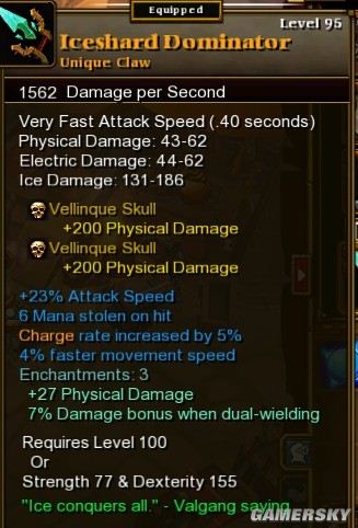 狂战士武器选择。玩家们会问。为什么不选100级的武器。结果是被动技能中冰系。有个点满是90%额外冰伤害30%物理。100级武器并没有冰系、所以选95.并且此武器攻速极高。配合被动暗影系的 减甲加自己护甲。点满之后,打木桩护甲可以上W ,左右手 宝石镶嵌:大多数技能都是按右手攻击计算。所以右手 必须 X上物理宝石。最大提升攻击,而左右。可以 看情况 配合属性 或者攻速 等等。