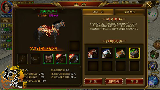 经历了最初的枣红马,战马,大宛马,跨入100级的用户会得到什么样的坐骑犒赏呢,的卢马!