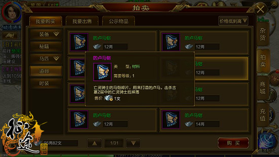 当然对于一些没有足够耐心去打碎片的用户来说,还是有更便捷的获得途径,是的,拍卖行,点击拍卖,马匹下面的道具栏,会出现的卢马铠的界面,点击界面就会出现产品展示,现在的卢马铠的价格多维持在银子12两到19两之间,价格也不算贵,打造一匹五等材料的的卢马所需要的马铠是20片,六等材料的的卢马需要的马铠是50片,也就是说,根据需求不同,2锭到10锭的消费是可以凑齐的卢马铠的。