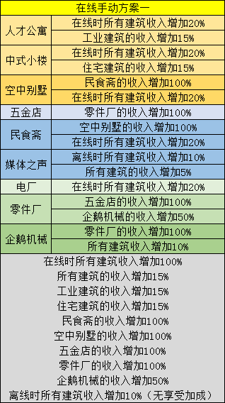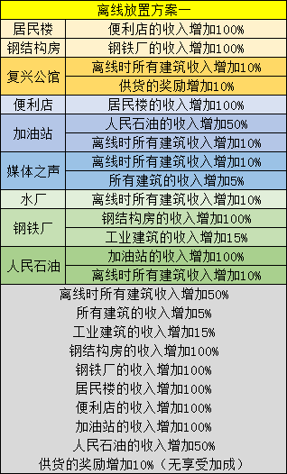 离线挂机方案:居民楼,钢结构房,复兴公馆,便利店,媒体之声,水厂,钢铁厂,人民石油。