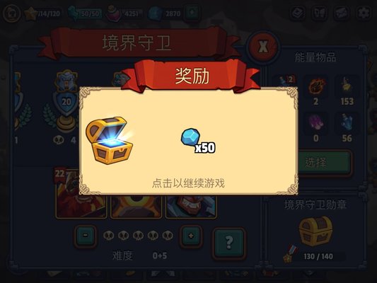 境界守卫中每次获得10个勋章后开启宝箱可获得50钻石。