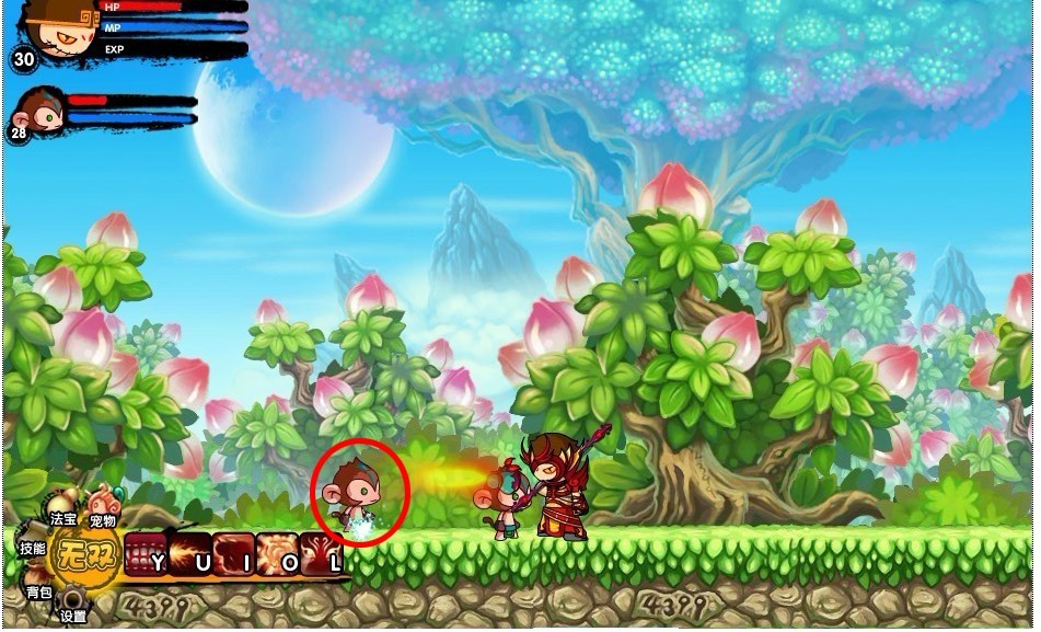 隐藏副本蟠桃园、御马监是宠物出没的地点。通过击杀天兵天将,就有概率会出现宠物哦~所以一定要准备好“宣花葫芦”哦,一旦宠物出现就把握好时机按H键,就可以进行宠物捕捉。(图中红圈即为宠物被抓时的样子)