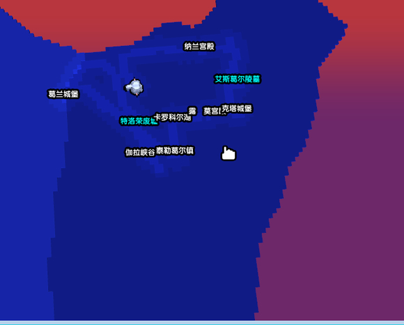 对着传送石按【R】,会打开地形图,注意,这里显示的传送门是紫色的,鼠标移到文字上会变蓝。