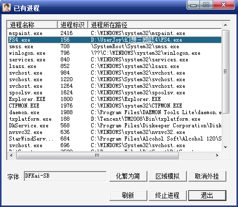 2.放入光盘,运行游戏,刚才的动态挂接窗口会出现FS4.EXE进程.