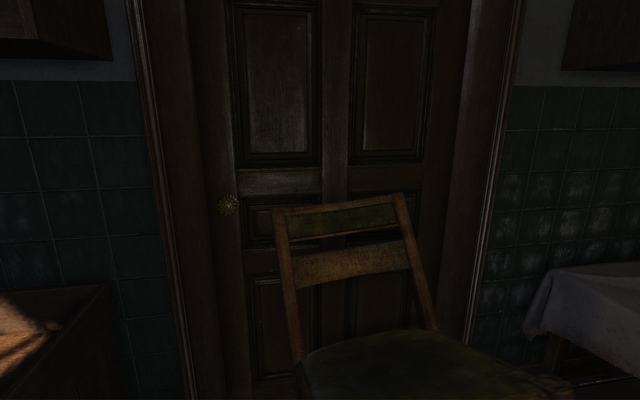 福尔摩斯用窗边的椅子挡住厨房大门。
