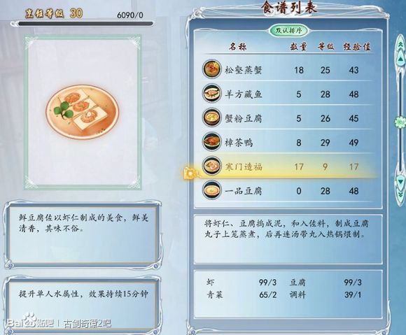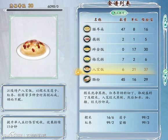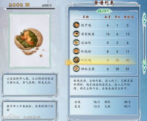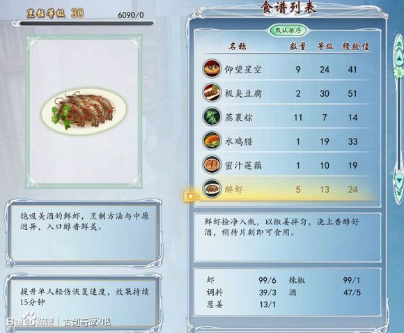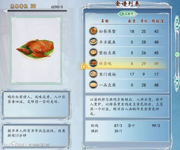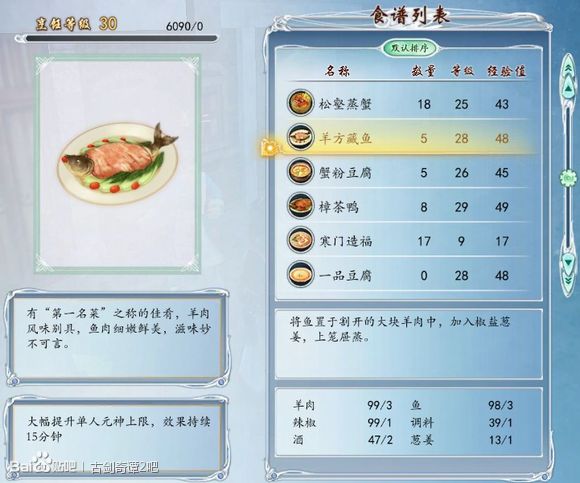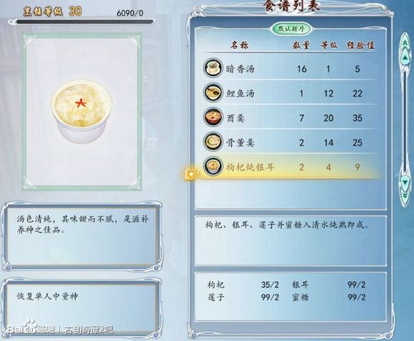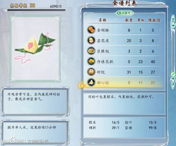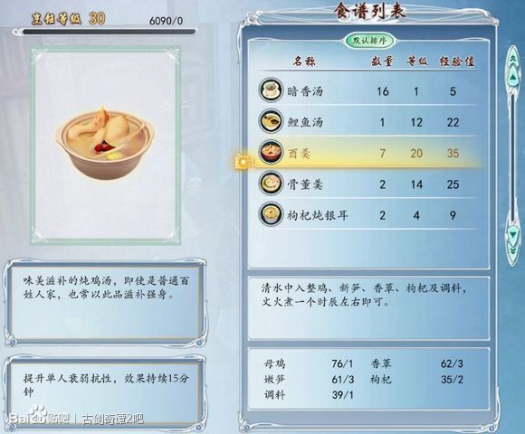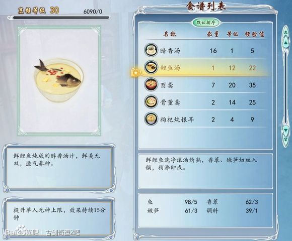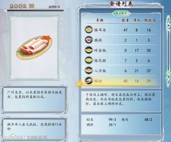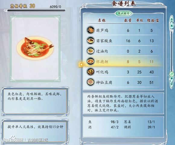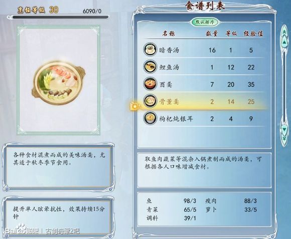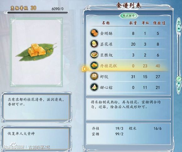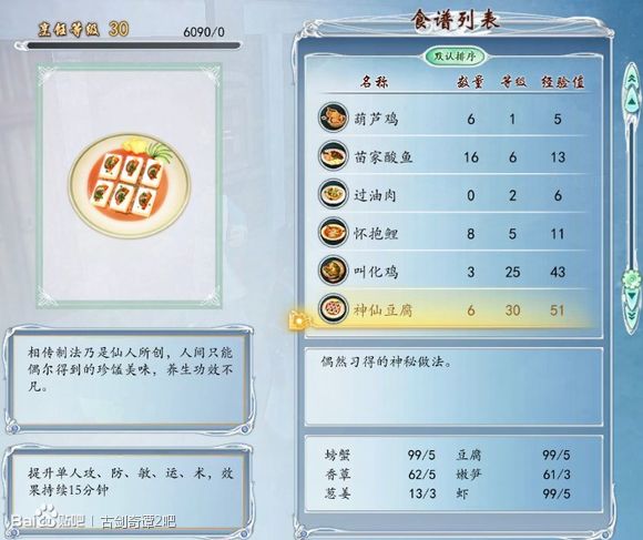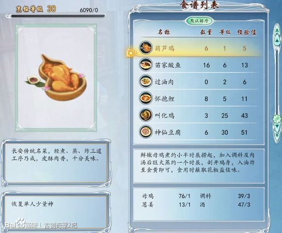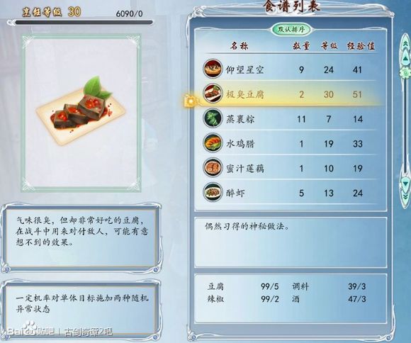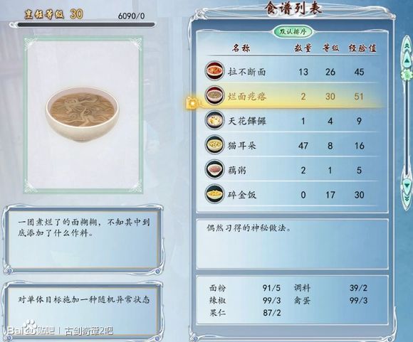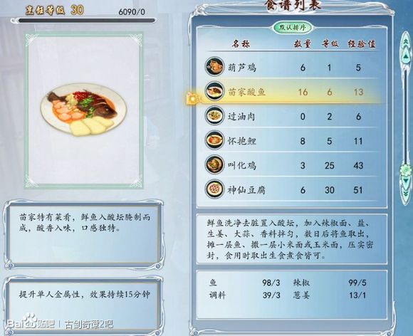 古剑奇谭2食谱大全_古剑奇谭2食谱