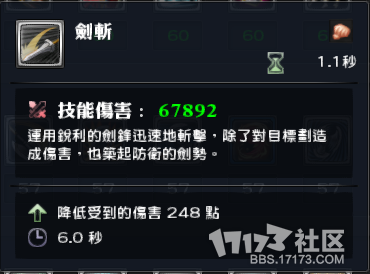 剑斩 配合奥义:破空剑斩,这个技能可以作为剑盾的主要主动输出技能,当然这技能也有少量减伤功能