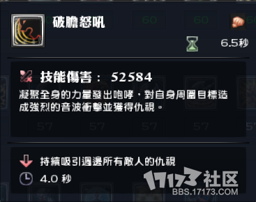 破胆怒吼 拉BOSS,拉小怪,剑盾输出的远程技能(对于手短的剑盾来说这个范围真的挺远了,真的)