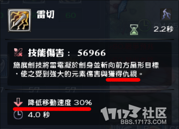 雷切 剑盾少有的范围伤害技能,也是拉BOSS仇恨用,但这技能有个减速效果,所以对于喜欢放鸽子的职业,冲上去就先施放减速,另外配合奥义:雷切·突可以增加不少的伤害