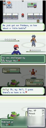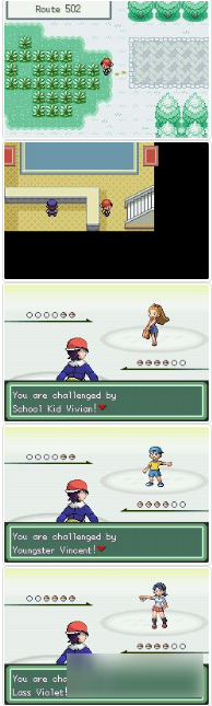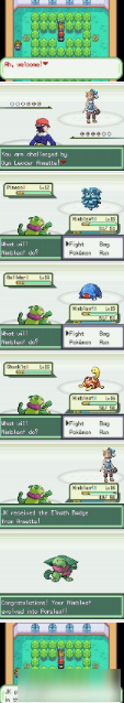 回到道路502图二处 上楼开始三连战 对方精灵全部都平均是9,8级 所以练级很重要