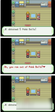 与少女对话 最初拿到五个精灵球 用完后可回来无限拿 不过每次只能拿一个