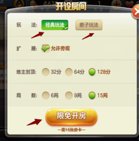 点击开设房间,弹出下图对话框。这时我选择好玩法,点击限免开房进。