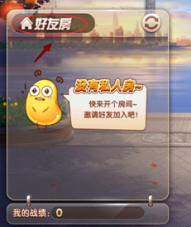 点击好友同玩之后,弹出下图界面,首先我们可以看到好友房的对话框,如果好友已经建房,这里会出现房间号,直接点击房间号进入游戏即可。如果好友没有建立好房间,我们可以点击开设房间。