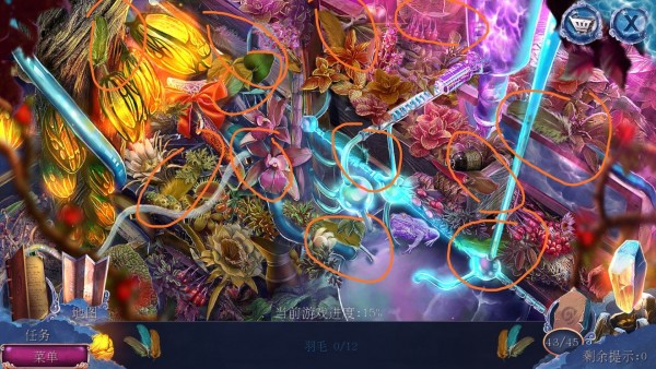 去果园,用坏了的镊子和导线开锁,得到氨水,回小屋,按配方制药,给神兽闻,开箱子,首先得到太阳标志,开锁,得到春天图片,弄成一半花一半树。