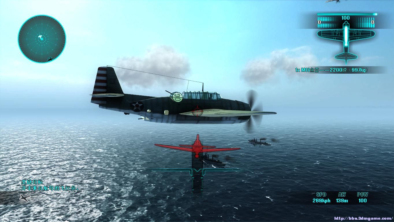美军最后一关的一阶段是用F4F空战保卫“芝加哥号”,二阶段是用TBF鱼雷机空战打掉所有敌机,都还比较容易过。第三阶段出来个只给你一架0发机枪子和弹0发炮弹、只有一枚鱼雷或者几枚炸弹(根据进场时的副武器选择,不能选火箭弹)的TBF,却要你击落前方马上要投弹的屠龙重型轰炸机。