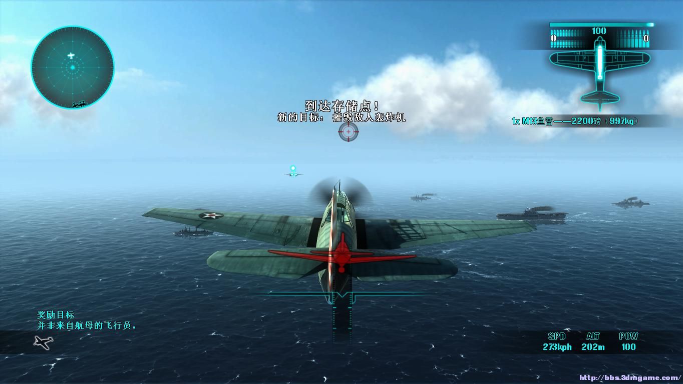 于是不停地返回记录点,连着摸索了十来遍,终于意外地发现了通关办法。我拿到无弹的TBF就迅速左躲右散敌机的尾炮,正想爬升到它头上一点点投弹时,刹不住车一头撞了上去,在它投弹前同归于尽,没想到任务提示过关了,还说了表彰这种现身精神神马的。