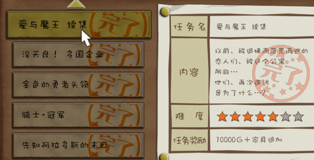 家具任务,是前边小任务里,爱与魔王,的任务,不杀那两个情侣,之后就会出现续集任务。