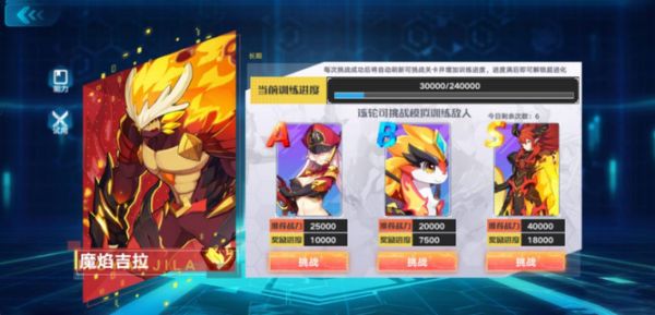 奥拉星御三家超进化是要进行觉醒挑战,挑战不同难度的关卡获得不同的进度,总进度到24000就开启超进化,共有4种不同难度分别为:B,A,S,SS。
