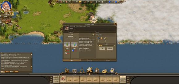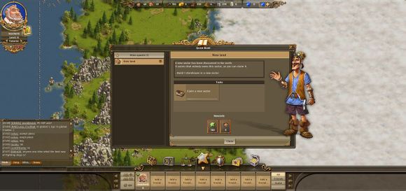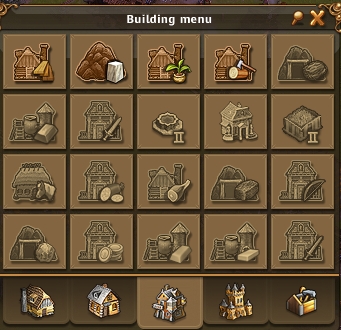 5. 主要按键。第一个是建筑,命令你的工人建筑不同的建筑物。第二个是物流计算,预测你12小时内各种物资的变化情况。第三个是市场,必须在建筑了交易所之后方可使用,坑人OR被人坑,当然一般都是公平交易的。第四个是星星菜单,你的将军、地质学家、探险者、还有你的食物,获得的宝贝都在这里6.。第五个是工会,加入工会后能你看到工会的资料。第六个是邮箱,除了可以跟别的用户进行通信,系统奖励也会通过这里发放。最后一个就是在线商城,咳咳,烧银子的地方。
