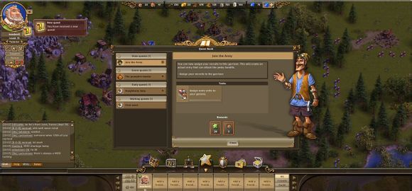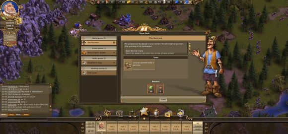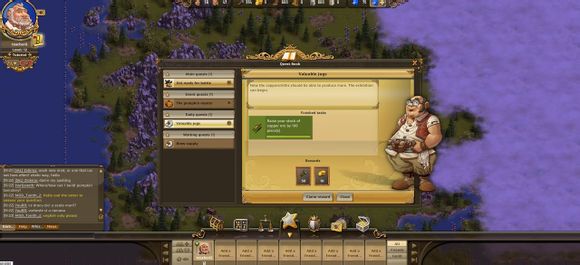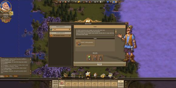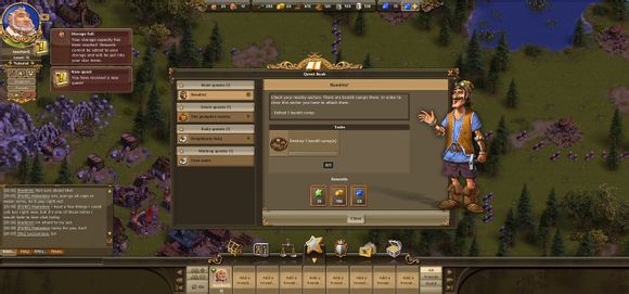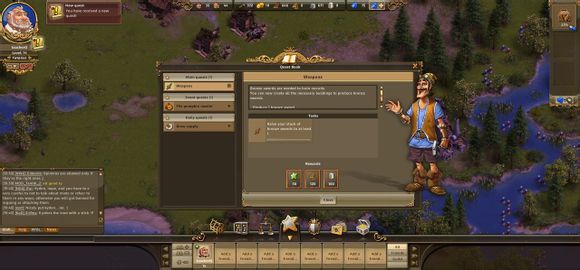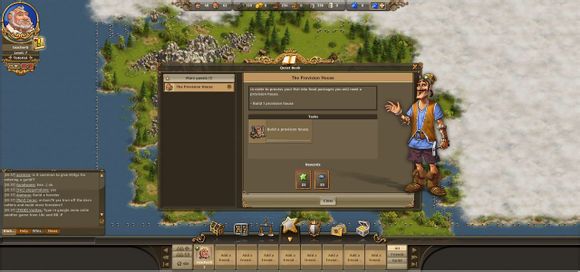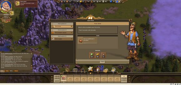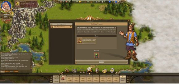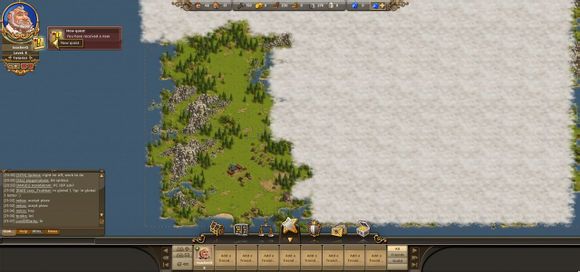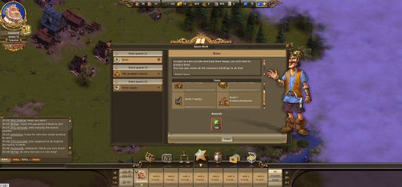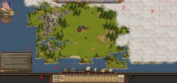 各位工友玩家们好,今天给玩家们介绍一下工人物语在线(thesettlersonline,简称TSO)的主界面。进入游戏之后,你可以看到下面这张图。整个主界面除了游戏地图,还有六个信息界面。