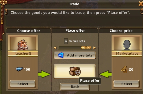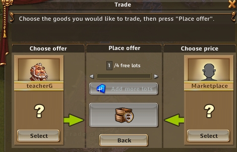这个画面左边表示你准备拿出来交换的货物,右边表示对方付出的东西。中间表示你愿意成交多少次,不付出宝石的最多4次,一次交易挂单是6小时。你只能免费发布一项交易,从第二项交易开始,你必须付出额外的代价。