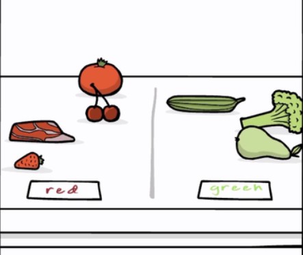 DAY7先把晚餐桌上的食物按照颜色分类,并且吃掉它们。