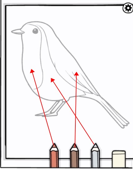 然后娱乐活动把小鸟按照窗外小鸟的颜色涂色。