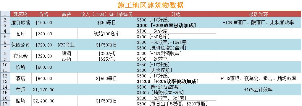 《黑手党:黑帮之城》流程攻略及各建筑物相关数据_黑帮之城