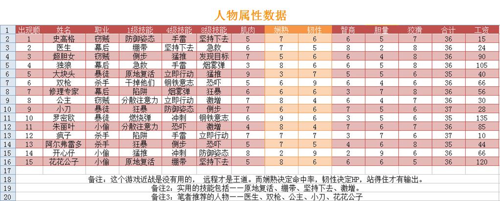 所以选远程,而最重要的属性是娴熟决定命中率,韧性决定HP
