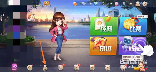 3.进入游戏主界面后,点击箭头处的“好友”按钮,查看游戏好友。
