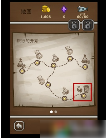 1.游戏中设有宝箱关卡(如图示处),用户点击进入宝箱关卡。