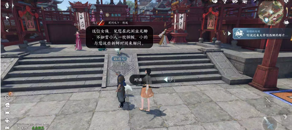 2、完成方法:来到任务位置,给路岐人一枚铜板听他话书即可触发奇遇,之后按剧情完成即可。
