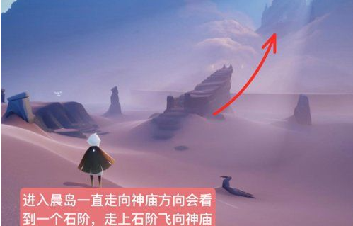 1、进入晨岛地图后,飞向神庙方向。