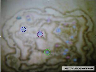 绿圈所示的地点就是トックル村,一进村就中了埋伏,被带到监牢里。往右穿越墙壁来到另一间囚室,发现アーガス的国王也在这里!原来アーガス的神官哈恩被邪恶的力量控制后发动了叛乱。来到最右边的一间囚室,里面的士兵将一本缩小术交给我们后死去了。使用缩小术后从这间囚室的小洞里钻出去。一路下到最底层找到哈恩开战。(交战前一定要将任一角色转职成学者!)