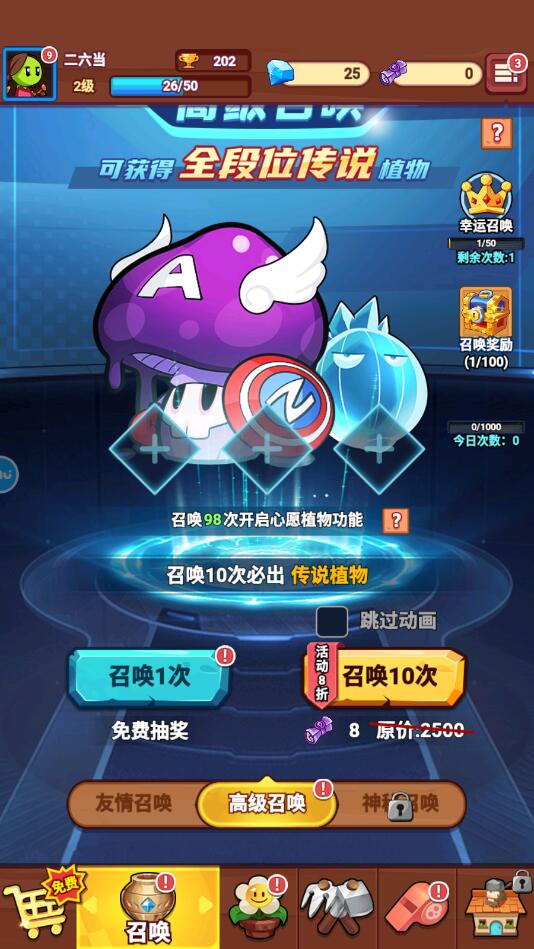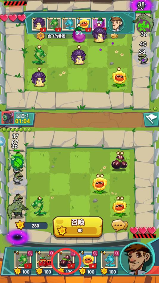 3、我们需要不断地召唤植物来消灭怪物,相同的植物合成会提升战斗力
