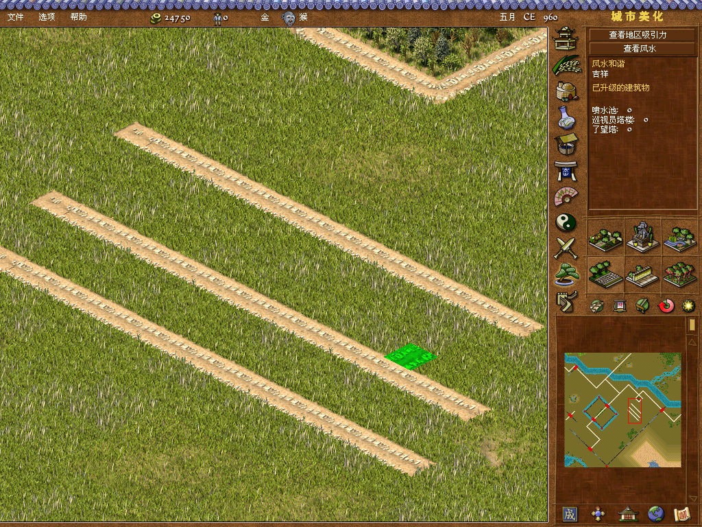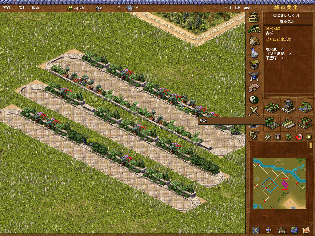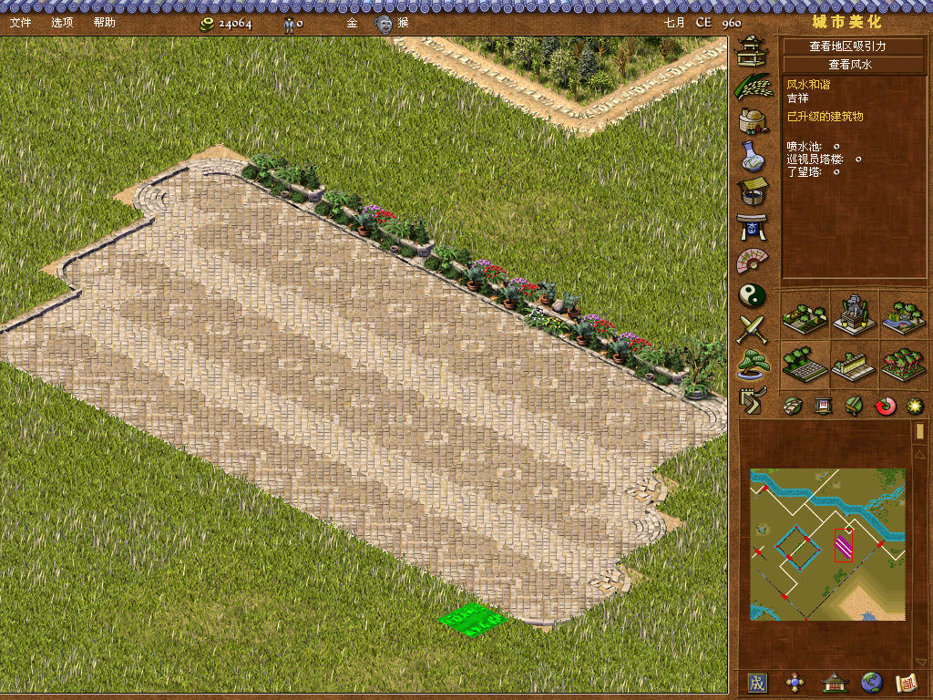 造广场第二步:铺上辉煌之路或帝国之路,中间要空一格,否则造不上