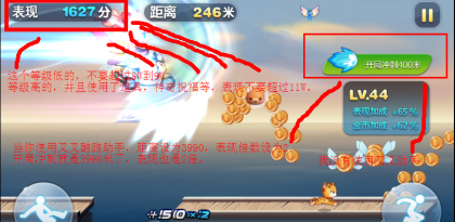 点击开始游戏,这时就开始飞行了。《之前设置好的3990米》已经飞到3990米了,手动操作玩。建议。购买了3次的神圣祝福,然后购买接力奔跑,《1200金币》和死亡毅力飞行《500金币》 表现不要超出11W。