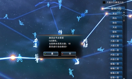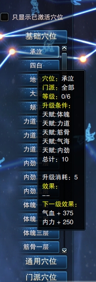 包括点开该穴位的条件,消耗的资质,以及点开穴位后的效果
