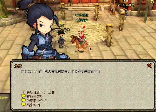 现在是万事俱备了,东风也具备了,跑到焦赞那里顺利转成带甲了。就这么点窍门,其他职业也是这么转的。流程就是做转职任务,转成平民,要求达到了就转成你想要的职业了。希望能够帮到玩家们。