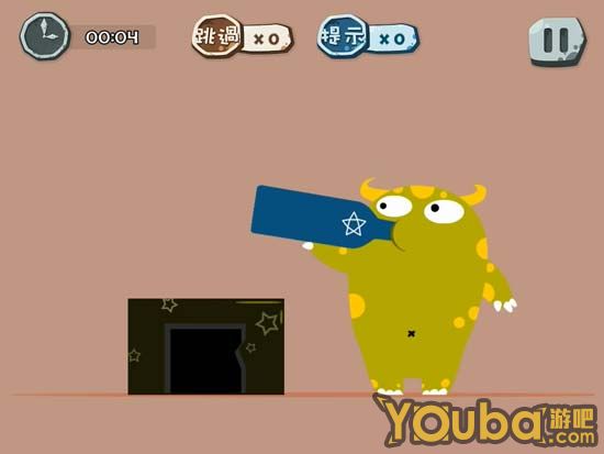 1、点击移动瓶子,让小绿怪喝下,他就会变小了。