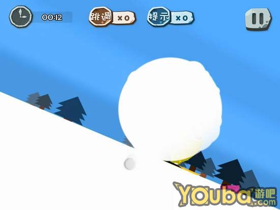 如下图所示,用一根手指按照箭头的方向一直重复滑动,而且速度要快。这样就会形成雪球,越大越好,最后就会从小绿怪身上压过去。