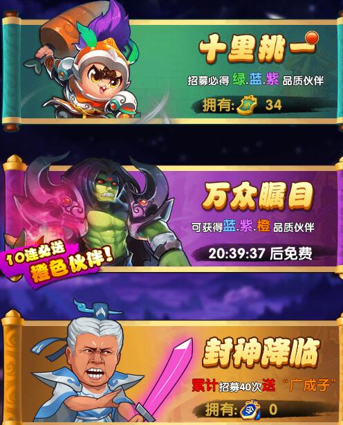 这下我们十分清晰了,想要获得红色武将的方法就只能够先从搜集橙色武将开始。没有橙色武将作为基础就没有红色角色,就相当于是一个养成,不会直接给你一个无敌的角色,而是给你一个普通的小精灵慢慢的培养进化突破成一个最强的角色。避免了氪金用户对贫民用户的碾压态势。所以这里我们先来给玩家们说一说怎么获取这些优秀的橙色角色吧。