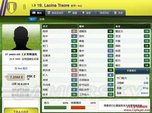 穷人版伊布Traore,有钱第二赛季去15m左右拿下吧,弹跳20技术又好射门16.