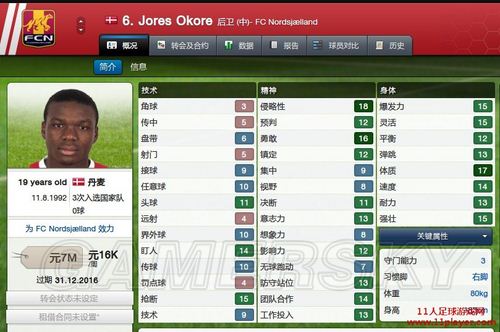 挪威的黑又硬Okore,开档1.5M毁约,年轻关键属性亮,中下游球队必备.