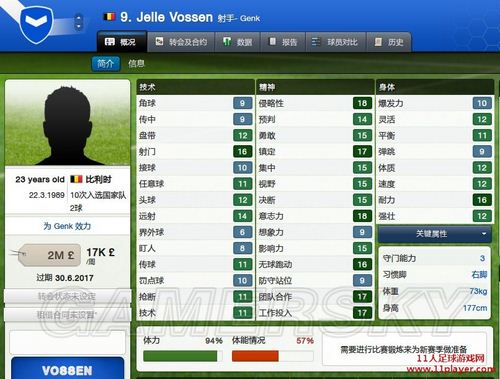 穷人版鲁尼VOSSEN,开档4m左右拿下,精神属性强大踢球很有鲁尼的感觉.