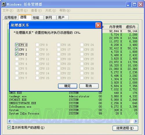经过几个小时的研究发现其实卡顿的原因是2k13的CPU多核没有用上,但网上修改Config试验了一下,也没有效果。最后在任务管理器中重新进行关系设置尽然就一点都不卡了。分享给XP用户。具体操作方法:已浏览器进程为例(2k13.exe类似)进行修改,首先把CPU 1 CPU2勾选取消在进入游戏,然后再还原,即可激活三个CPU,如果不这样,其实默认游戏是没有激活的。
